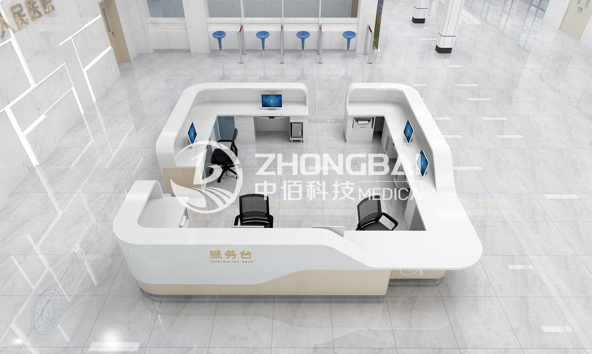 親切優(yōu)雅是設(shè)計(jì)服務(wù)臺(tái)的宗旨,力求其與環(huán)境相融合,讓醫(yī)務(wù)工作者及周邊的人群感到踏實(shí)溫暖;設(shè)計(jì)新穎大方、布局合理使用。